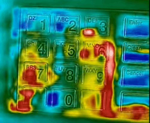When you touch any surface some amount of heat transferred between your body and that surface. Basically, when we use a keypad to enter the ATM PIN some heat transfer from your body to Keypad surface. We can't feel or see this but a Thermal Imaging Camera can catch it. If anyone takes a picture within a minute or two it can easily get your ATM pin with 90% accuracy. If it more than 5minute that it have 50-50 chance.
